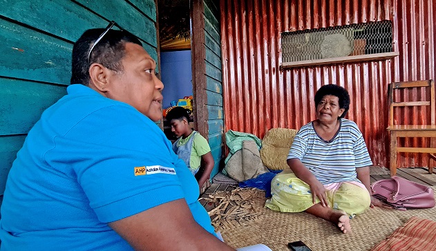 Ema Maimai shares her story with AHP MERLI Technical Support Officer Paulini Vakacegu . Picture: SUPPLIED