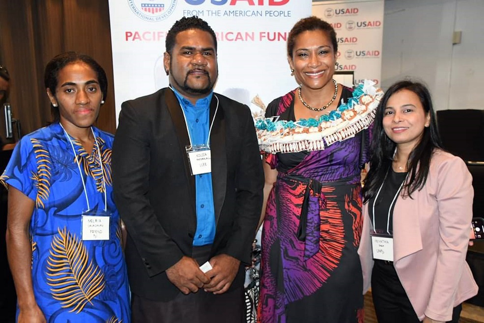 USAID grant receiptants Melaia Salacakau Project Manager FRIEND , LIVE AND LEARN Fiji Project Manager Kolosa Matebalavu, Women’s, Children and Poverty Alleviation Minister Lynda Tabuya and University of Fiji Lecturer Priyatma Singh at the USAID Pacific American Grant Award Spotlight Event on Tuesday at the Grand Pacific Hotel. Photo: Fiji Government